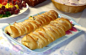 This recipe is great for a buffet table or something like a baby shower because it can be sliced into small sections...it tastes good even after it's cooled to room temperature and the braided effect of the dough looks pretty.