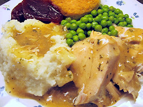 Have you ever cooked a whole turkey breast in the crockpot? I did, for the first time, this weekend, and I can tell you I will be doing it again and again. It was super tender without being dried out (in fact it was quite moist and flavorful) and it makes enough broth to make a wonderful gravy too! 5½ pound bone-in turkey breast