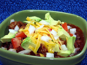 Throw a handful of broken corn chips into the bottom of each bowl and top with the chili and chopped avocado, tomato and cheese.