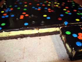 Spread this mixture over the cooled cookie crust. Place this in the fridge (or freezer) while you make the ganache topping.