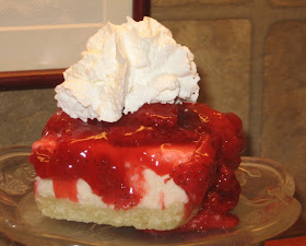 I put three recipes together, to come up with this dessert for two. It has a shortbread cookie crust, a creamy cheesecake layer and it is topped with a jelled strawberry topping. The contrast between the smooth vanilla cheesecake and the juicy strawberries was excellent!!!
