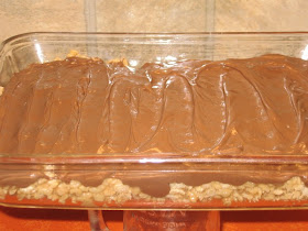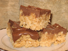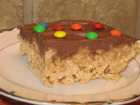 NOTE: This recipe calls for half semi-sweet chocolate chips and half peanut butter chips, but any combo would work well. I found a similar recipe that used half semi-sweet chocolate chips and half butterscotch chips for the frosting (they called them Scotcheroo's).